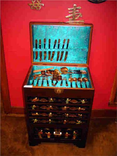 BLACK ORIENTAL FLATWARE CHEST