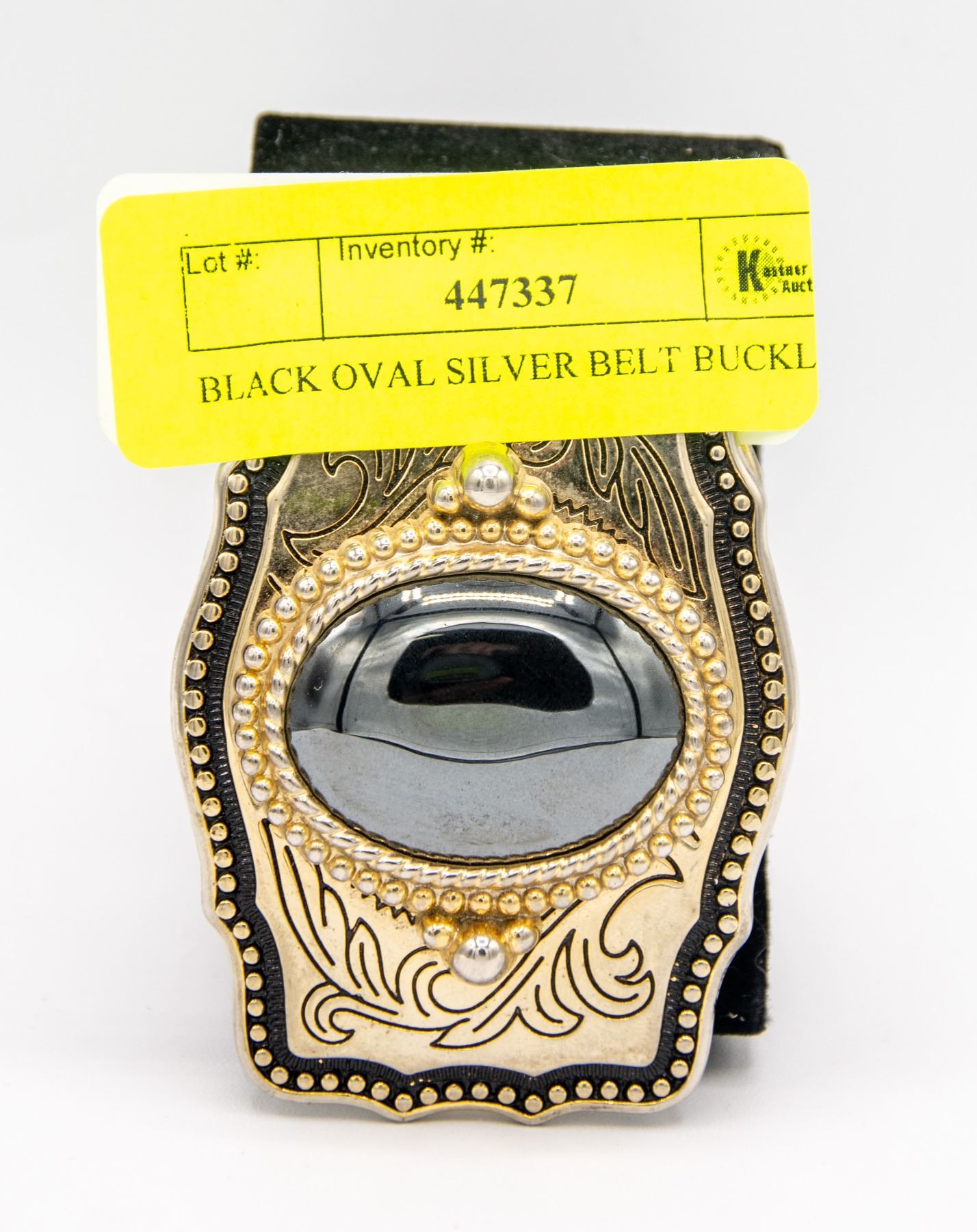 BLACK OVAL SILVER COLOURED BELT BUCKLE