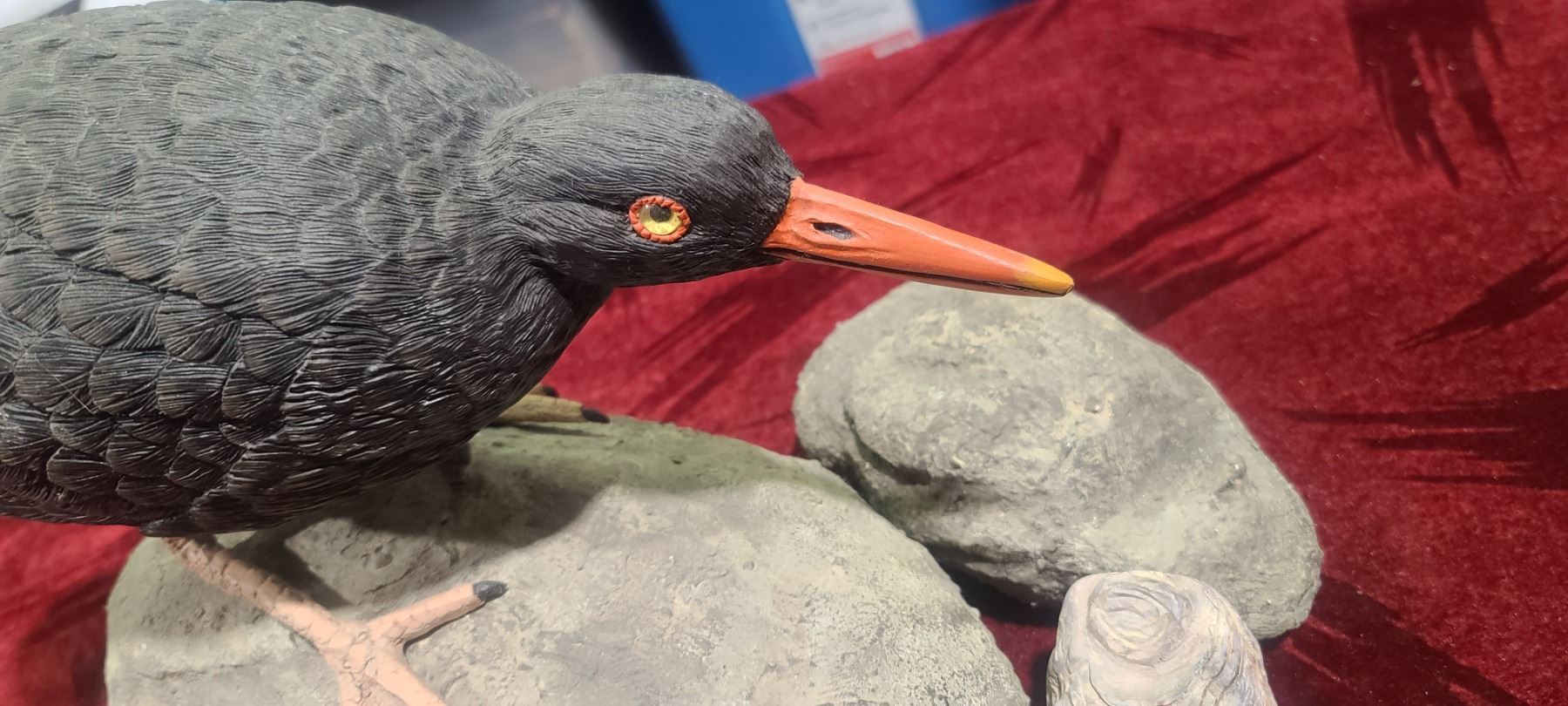 BLACK OYSTER CATCHER CARVING BY JACK FISHER 16"L X 10"W X 11"H - SHIPPING MAY REQUIRE EXTRA SHIPPING AND HANDLING