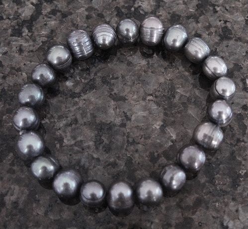 BLACK PEACOCK PEARL BRACELETT - 8 MM FRESH WATER PEARLS - 7" STRETCH BRACELET