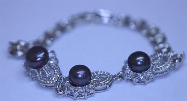 BLACK PEARL AND CZ BRACELET **|**|** BLACK PEARL AND CZ BRACELET ; MSRP: $100
