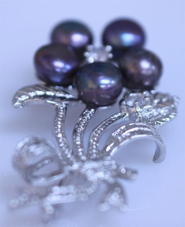 BLACK PEARL AND CZ BROOCH **|**|** BLACK PEARL AND CZ BROOCH ; MSRP: $200
