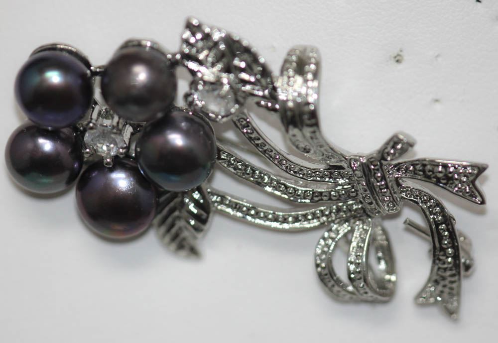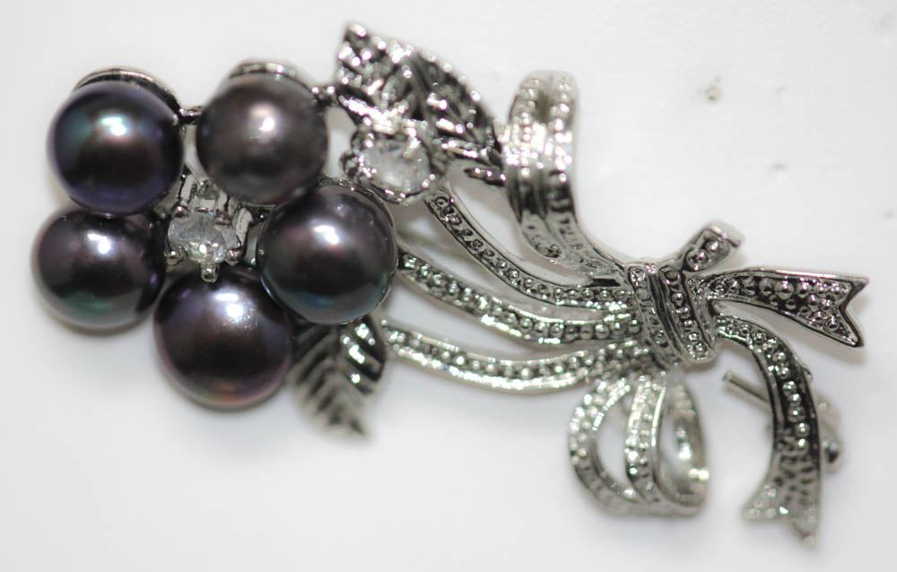 BLACK PEARL AND CZ BROOCH **|**|** BLACK PEARL AND CZ BROOCH
