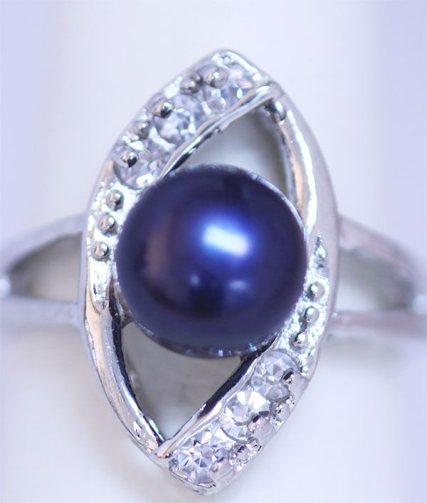 BLACK PEARL AND CZ RING **|**|** BLACK PEARL AND CZ RING ; MSRP: $200