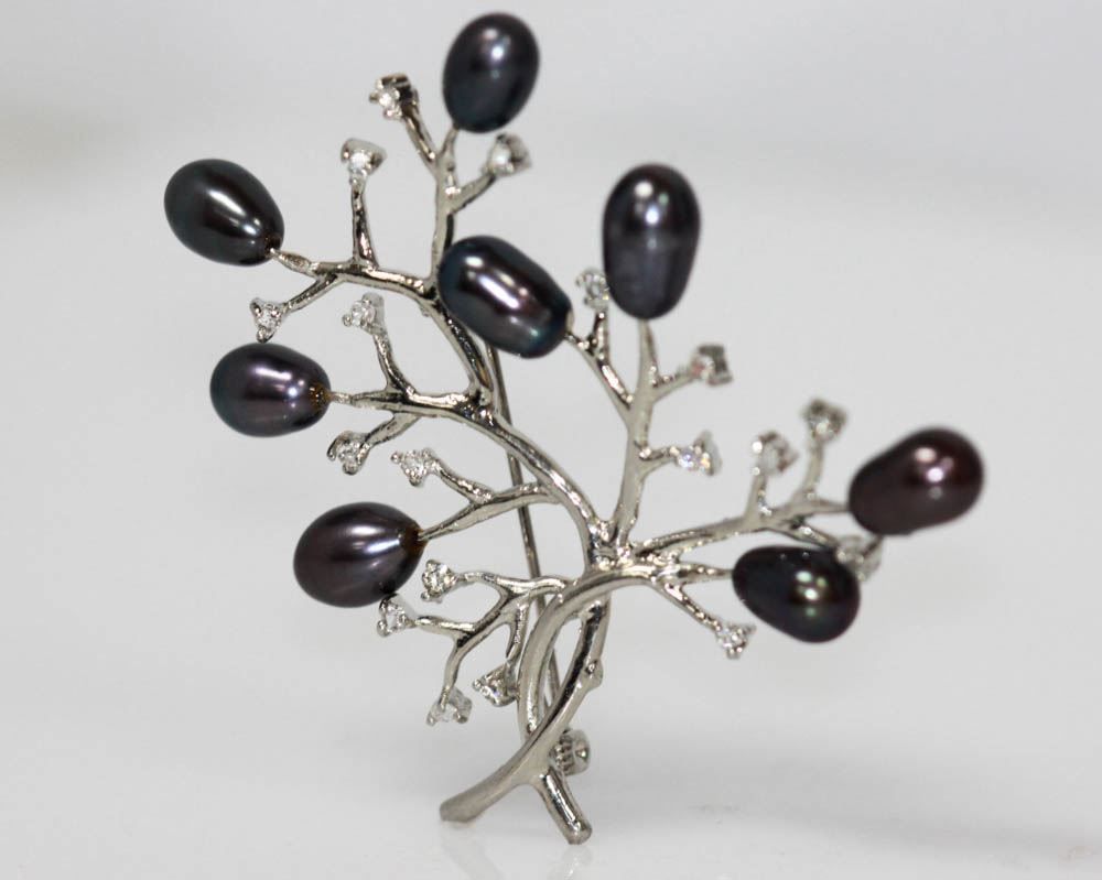 BLACK PEARL CZ BROOCH .925 STERLING SILVER **|**|** BLACK PEARL CZ BROOCH .925 STERLING SILVER