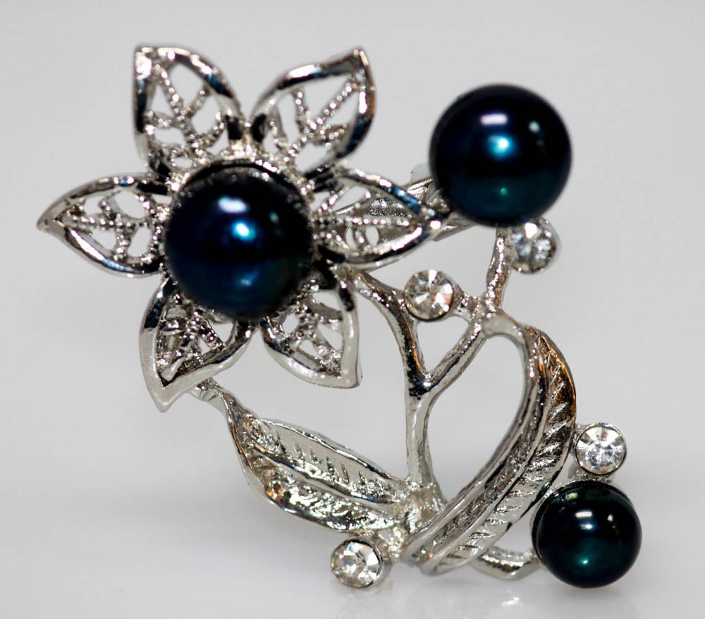 BLACK PEARL FLOWER CZ BROOCH **|**|** BLACK PEARL FLOWER CZ BROOCH
