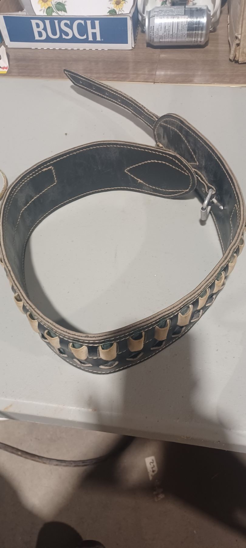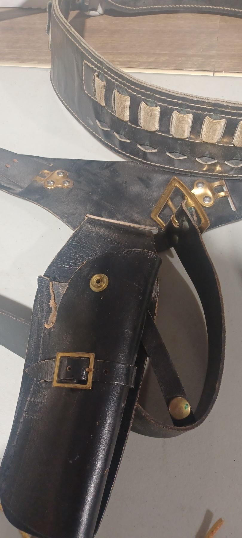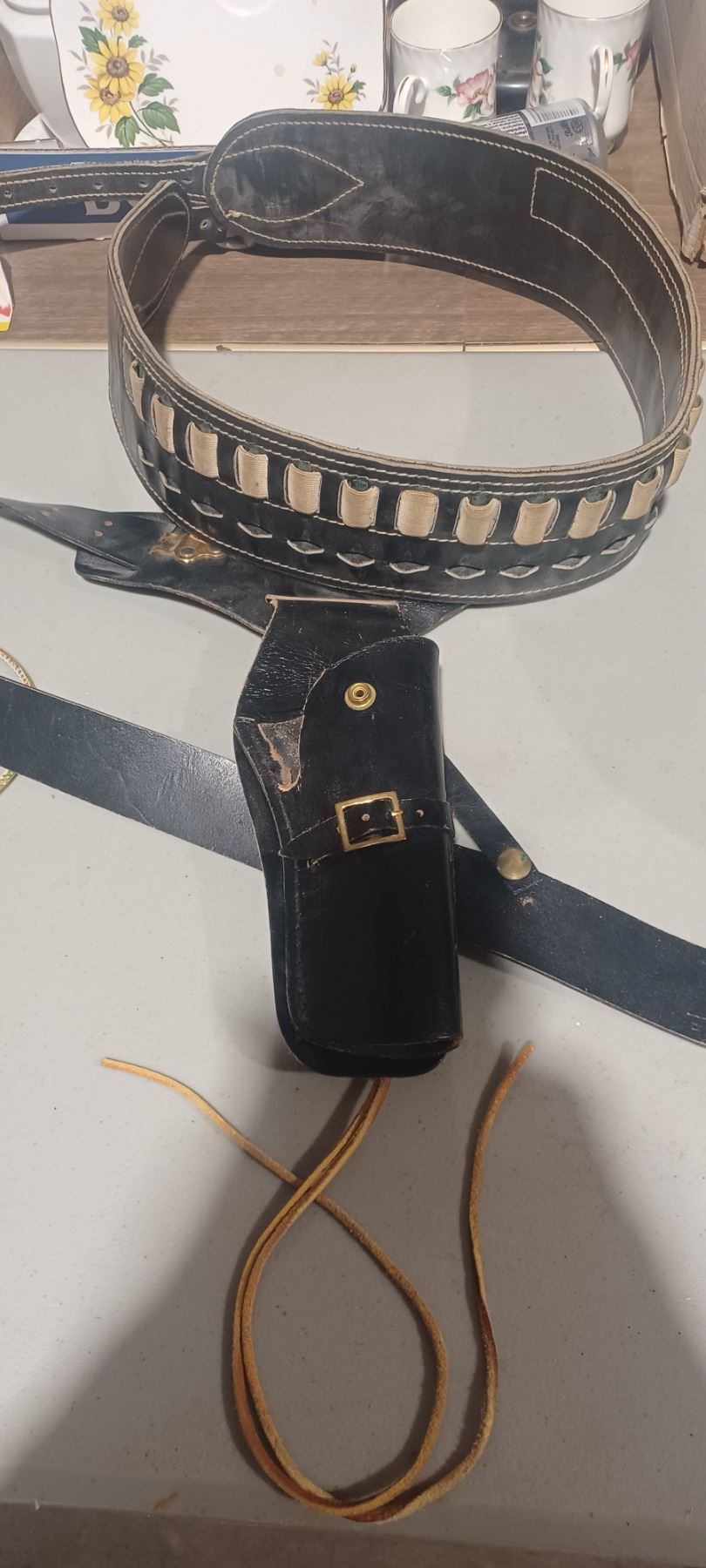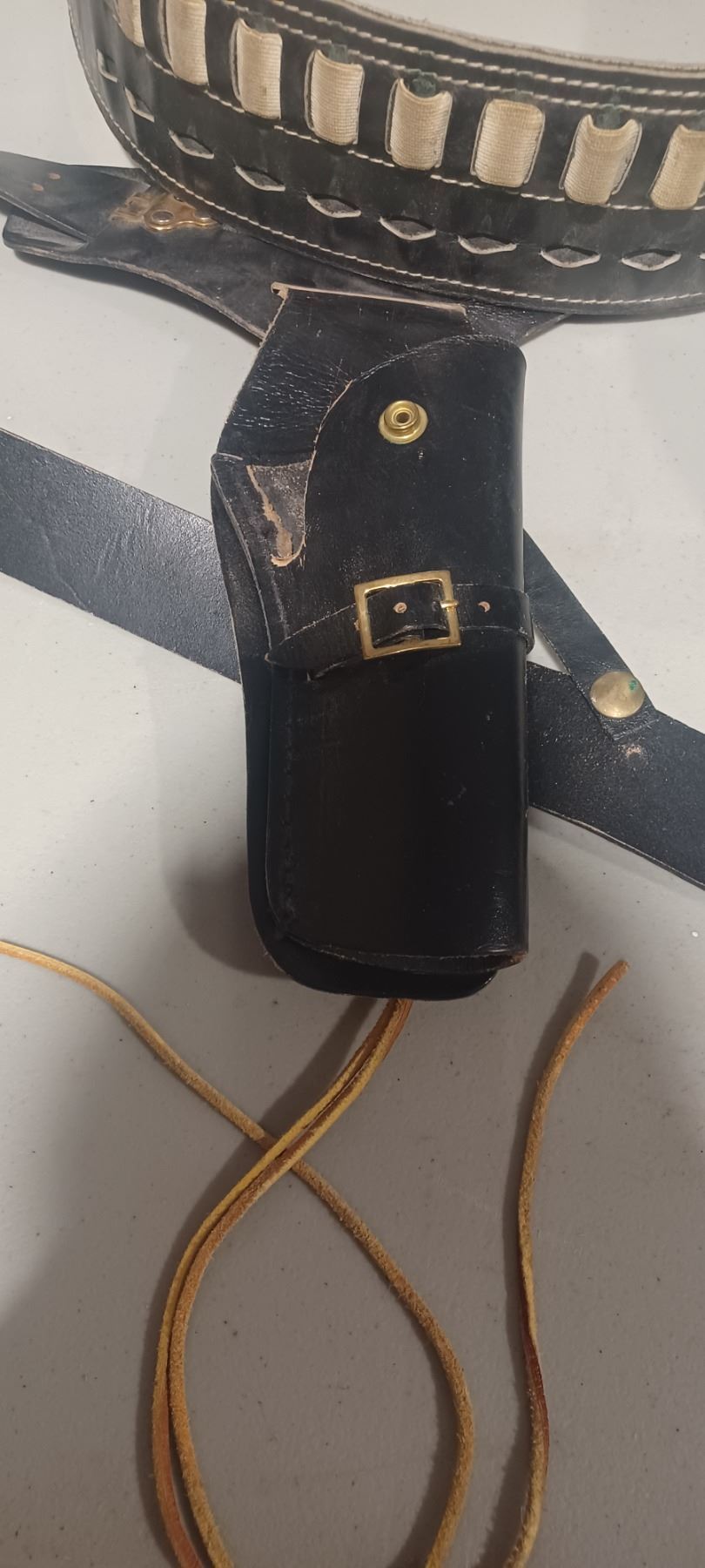 BLACK REVOLVER HOLSTER, BELT AND AMMO BELT