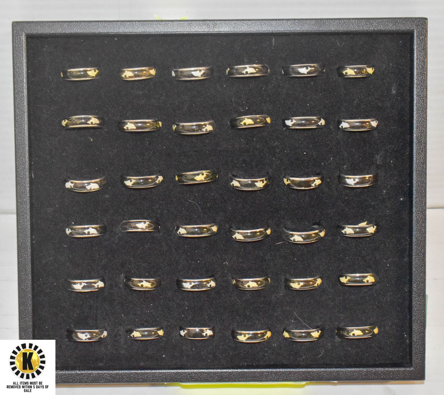 BLACK RING TRAY W/ 36 DOLPHIN RINGS