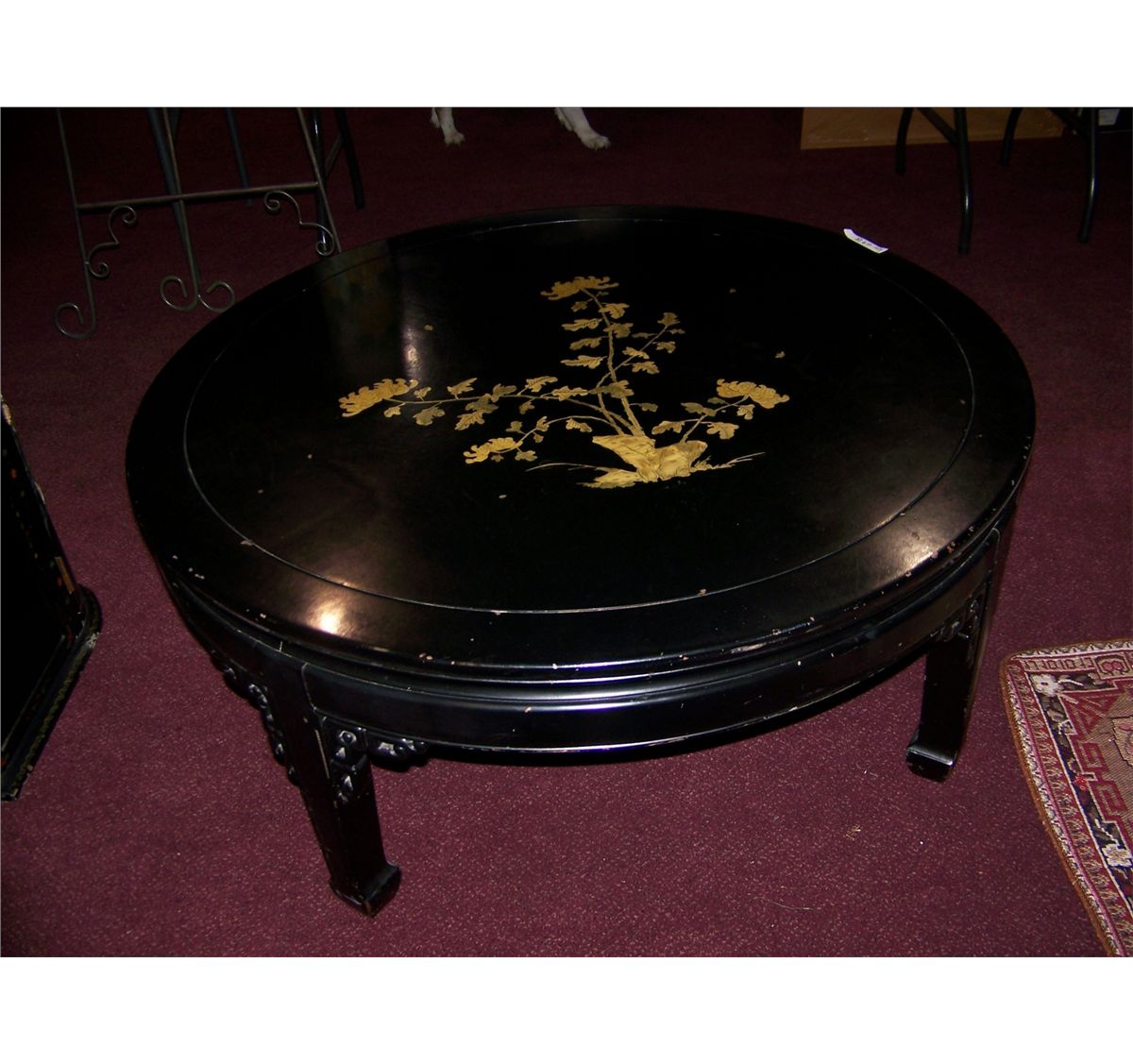 BLACK ROUND ASIAN STYLE TEA TABLE