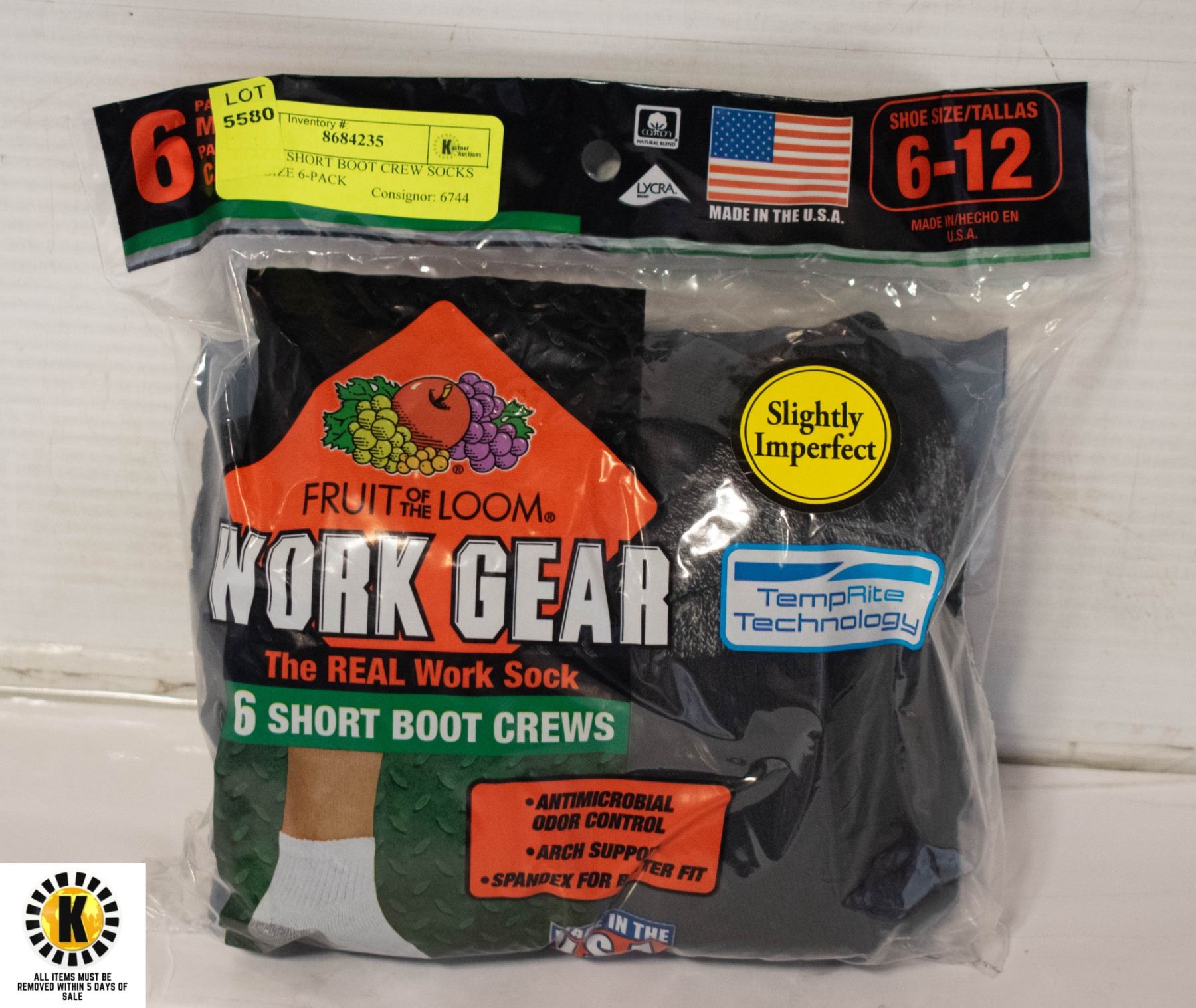 BLACK SHORT BOOT CREW SOCKS 6-12 SIZE 6-PACK