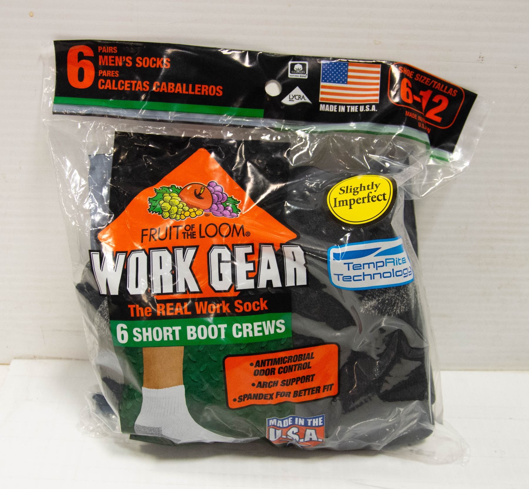 BLACK SHORT WORK BOOT SOCKS,SIZE6-12,6-PACK