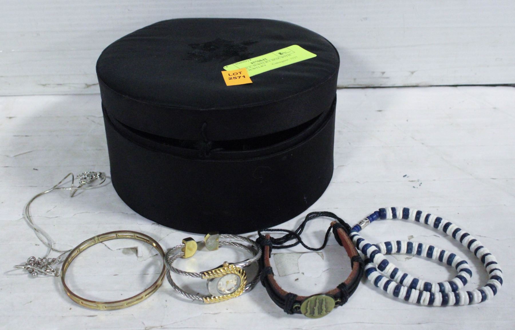 BLACK SILK JEWELRY BOX WITH ESTATE JEWELRY