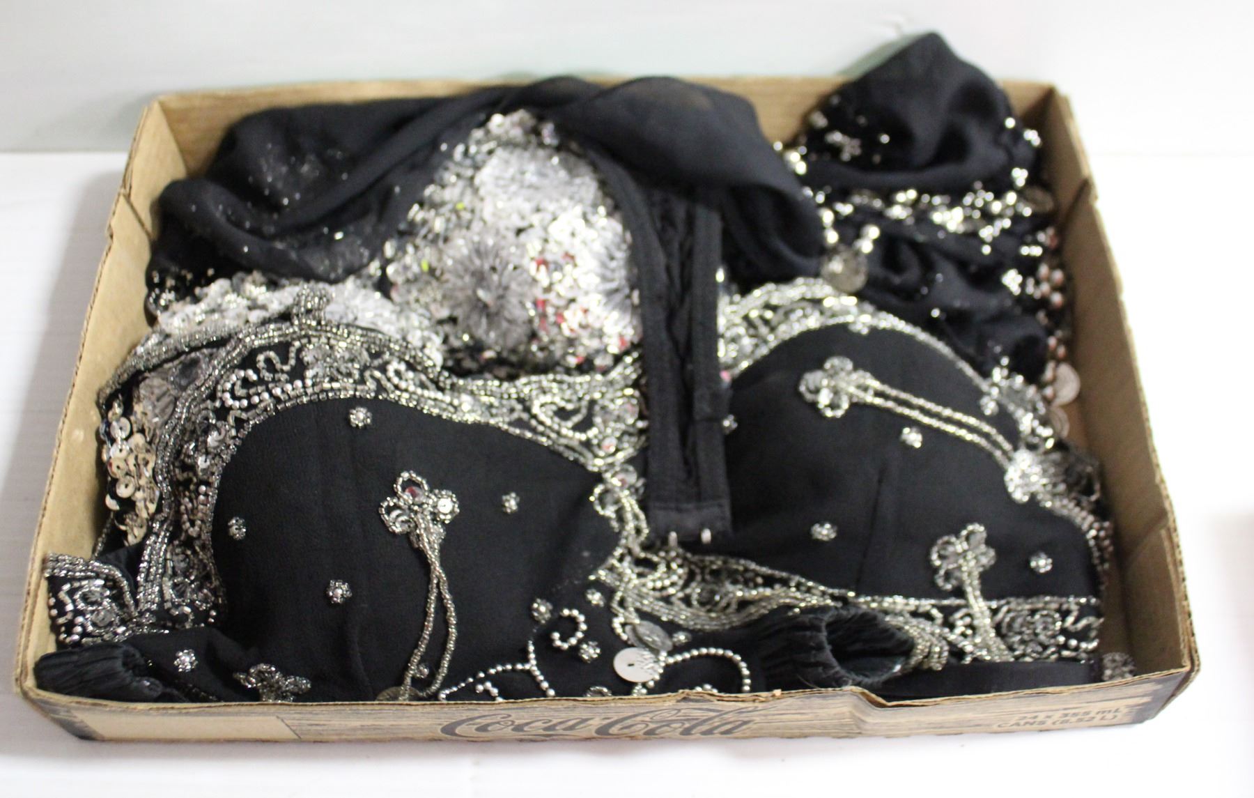 BLACK/ SILVER BELLY DANCER TOPS & SASH; SIZE LG