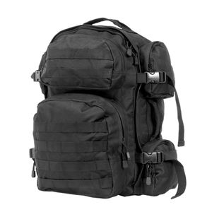 BLACK TACTICAL BACKPACK **|**|** BLACK TACTICAL BACKPACK Measures 20" x 18" x 7" Large zippered clamshell main compartment with internal zippered pocket Hydration bladder compartment Two adjustable compression straps on each side Six internal zippered pockets Padded shoulder straps Waist and sternum straps Carry handle straps on top and both sides PAL compatible