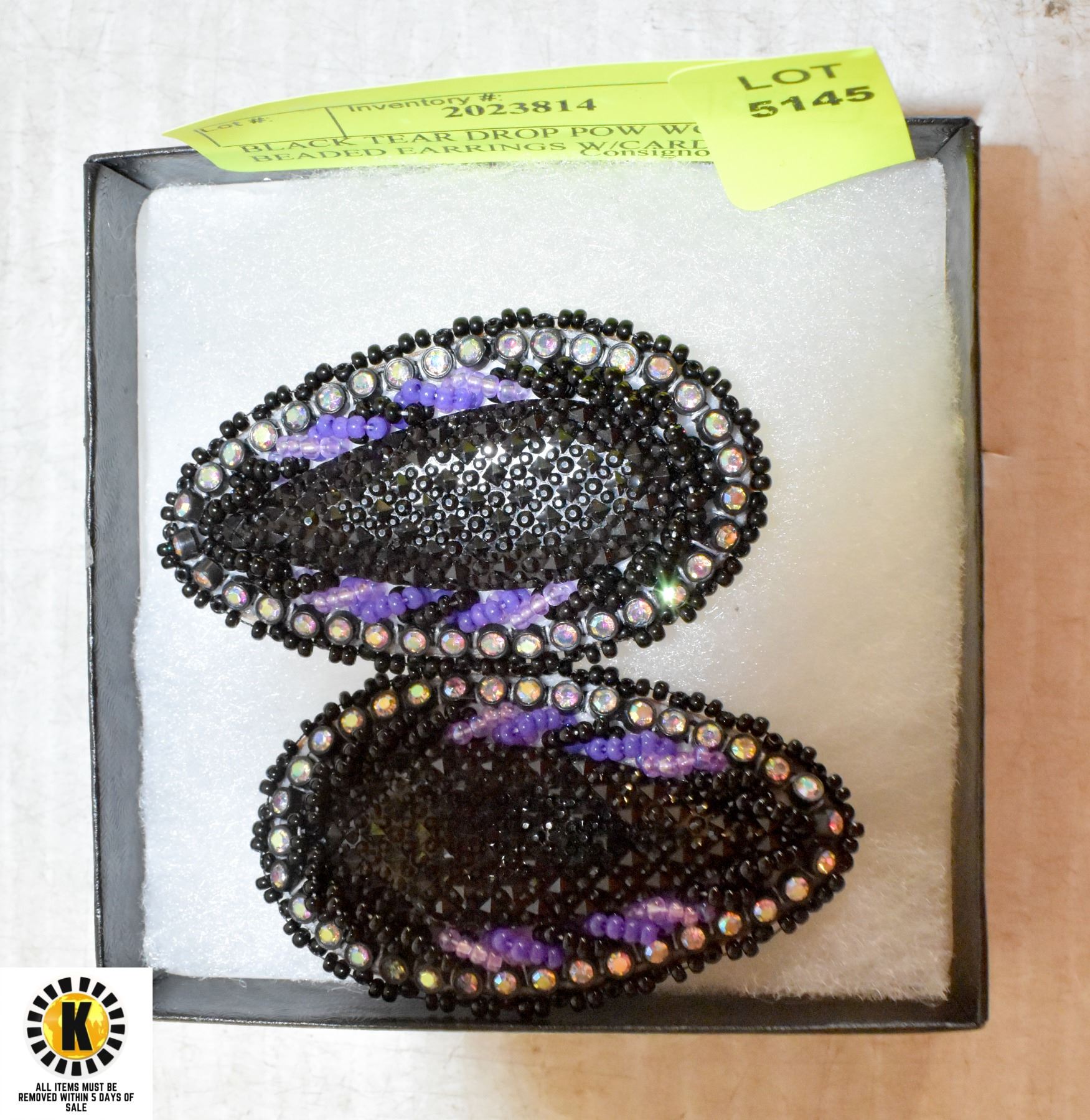 BLACK TEAR DROP POW WOW BEADED EARRINGS W/CARD