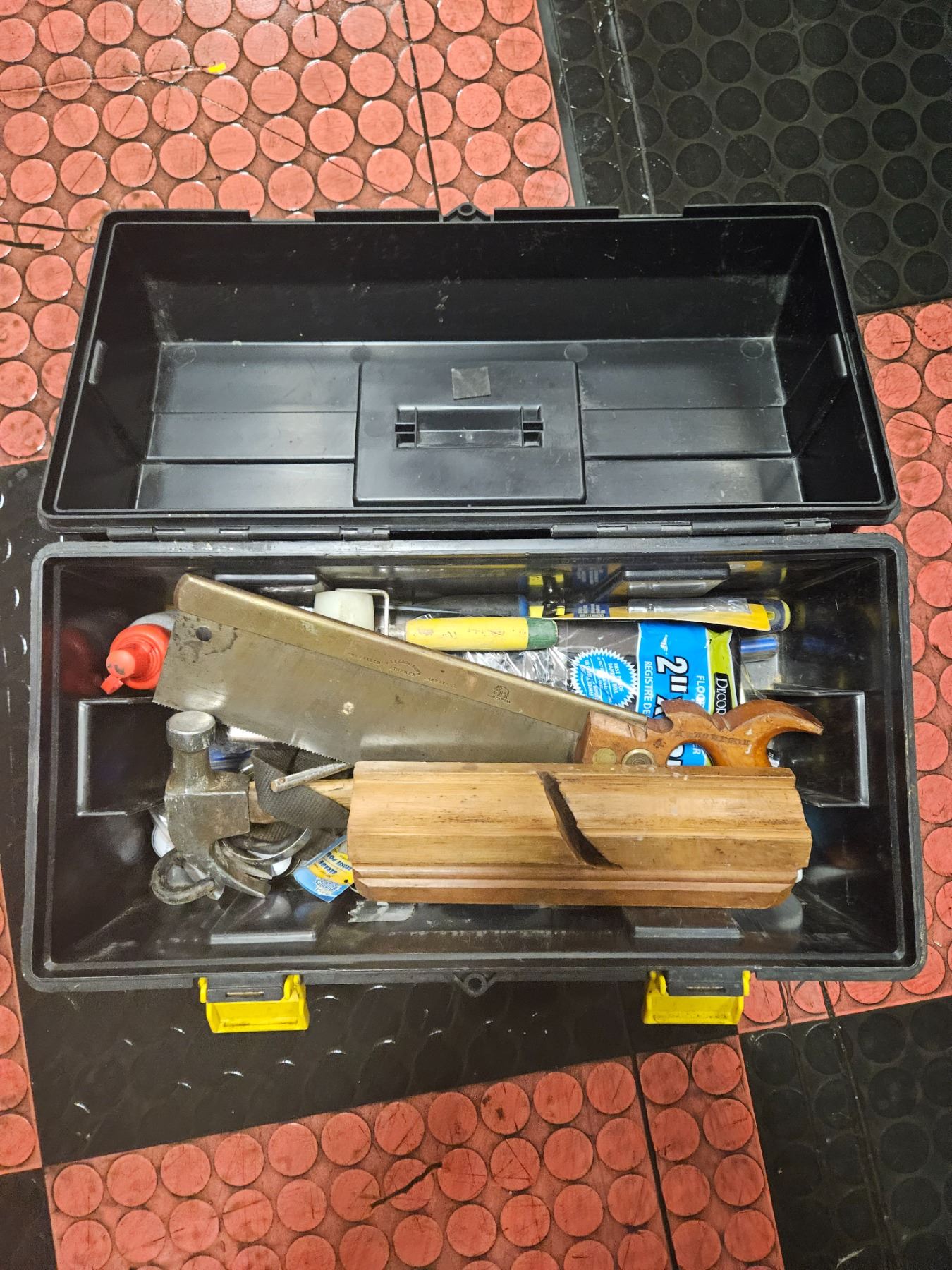 BLACK TOOL BOX WITH ASSORTED TOOLS