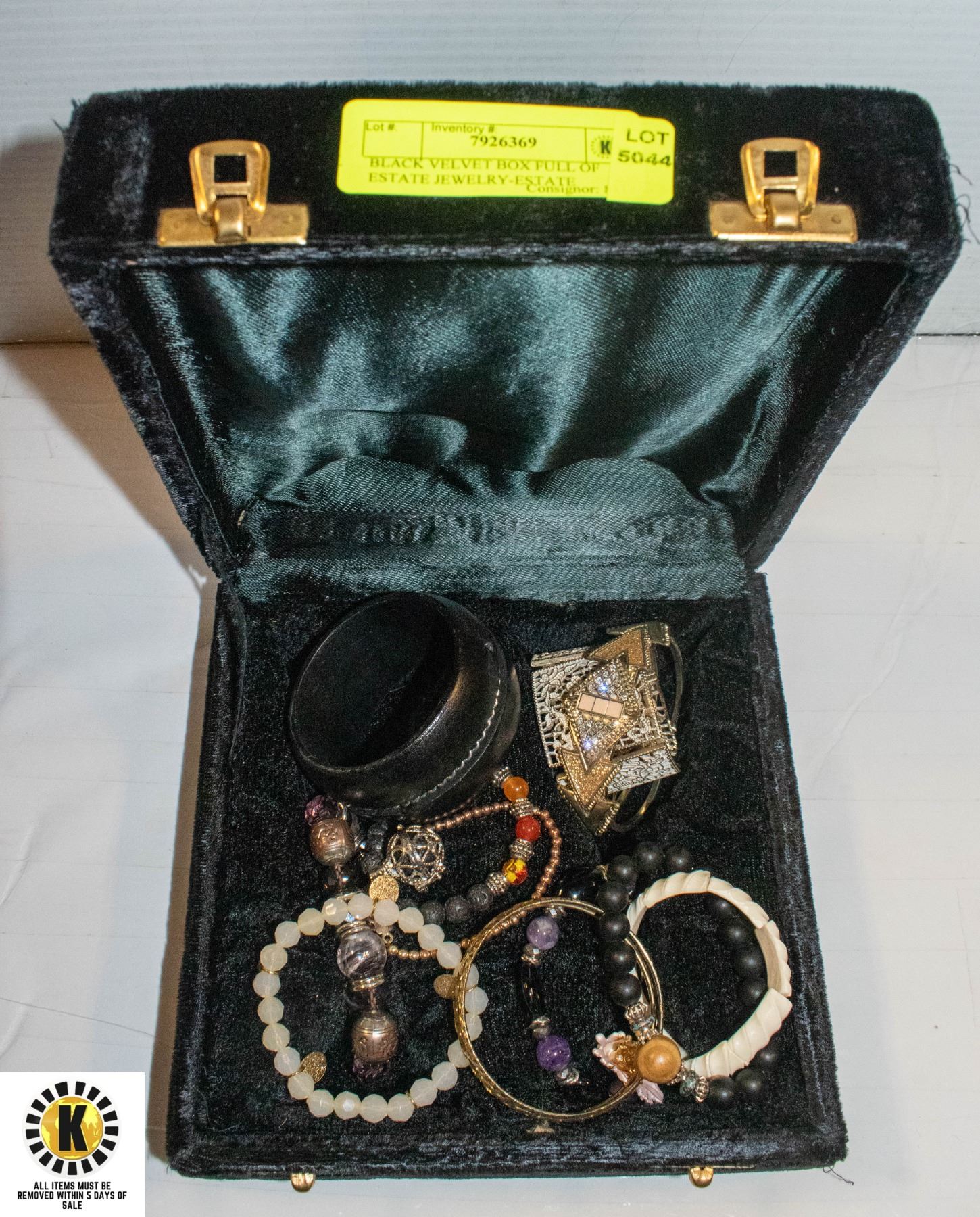 BLACK VELVET BOX FULL OF ESTATE JEWELRY-ESTATE