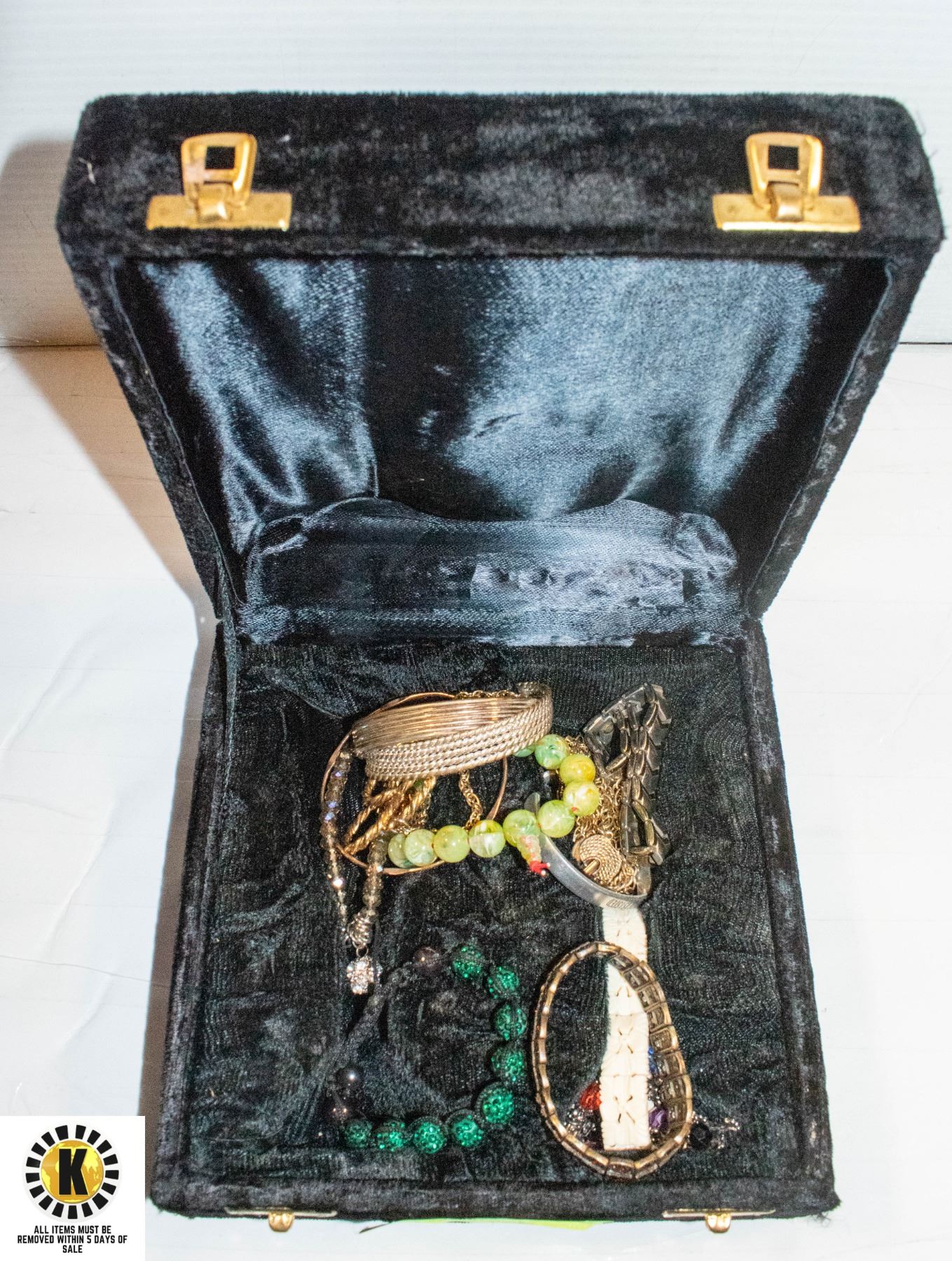 BLACK VELVET BOX FULL OF ESTATE JEWELRY-ESTATE