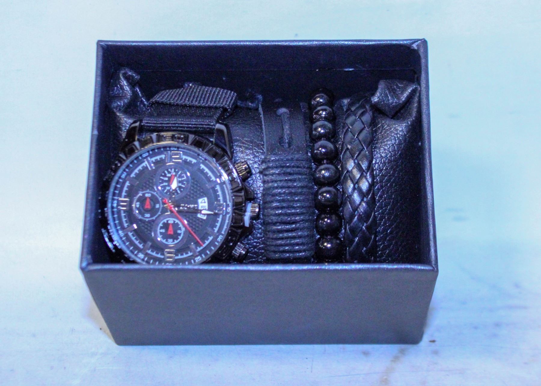 BLACK WATCH & BRACELETS (3) SET