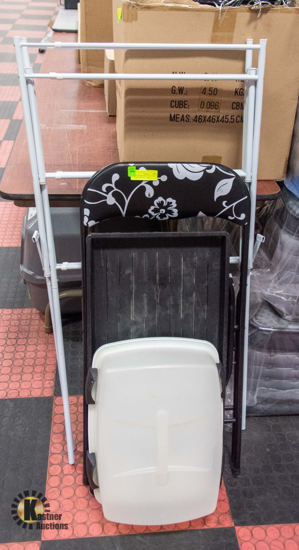 LAUNDRY DRYING RACK EXPENDABLE AND COLLAPSABLE FOR STORAGE + BLACK PLASTIC LIPPED EDGE SHOE MAT + LIDDED CUPCAKE CARRYING CASE **ALL ITEMS MUST BE REMOVED BY 5PM SATURDAY, AUGUST 31ST 2024. ALL REMAINING ITEMS WILL BE SUBJECT TO A $6.00 PER DAY STORAGE CHARGE. ANY ITEMS REMAINING AFTER MONDAY, SEPTEMBER 23RD 2024 WILL BE CONSIDERED FORFEITED. NO REFUNDS WILL BE ISSUED FOR FORFEITED ITEMS. TO SCHEDULE A PICK UP APPOINTMENT CLICK HERE