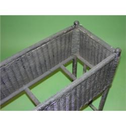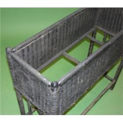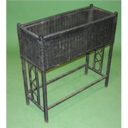 BLACK PAINTED WICKER FERNERY. Good overall cond. Missing insert. 27.5"H, 11"W, 28"L.