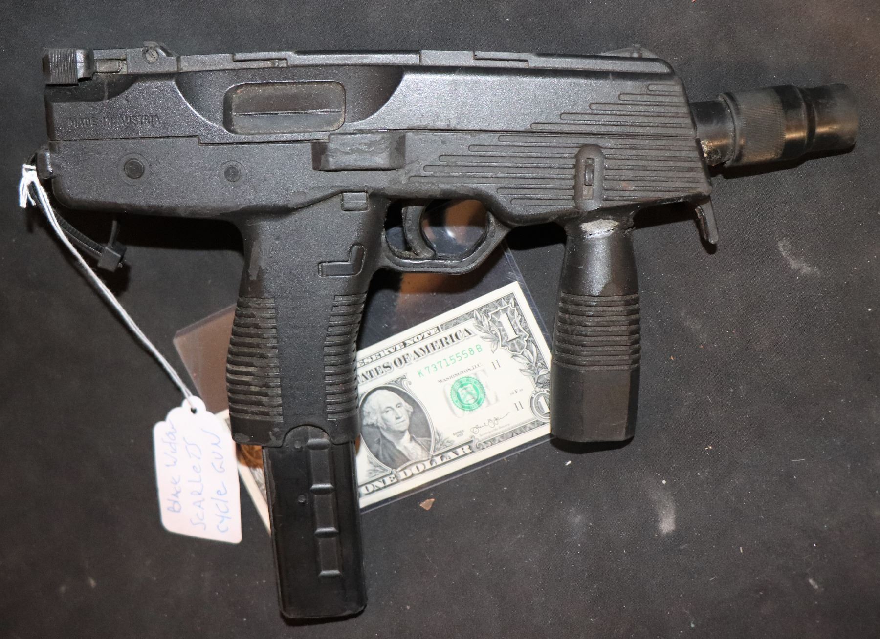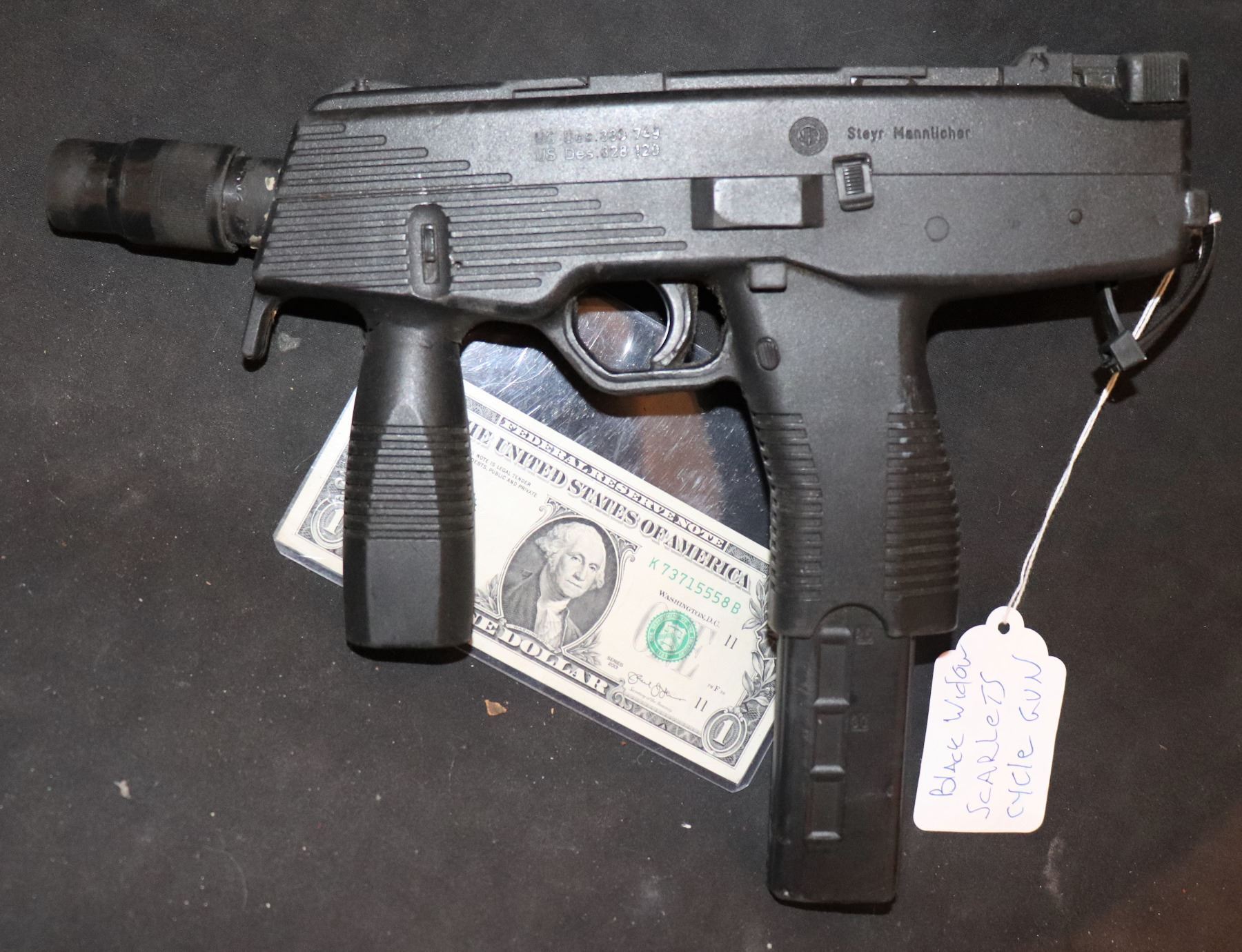 BLACK WIDOW STUNT MACHINE GUN USED IN HARLEY DAVIDSON SHOOT OUT!