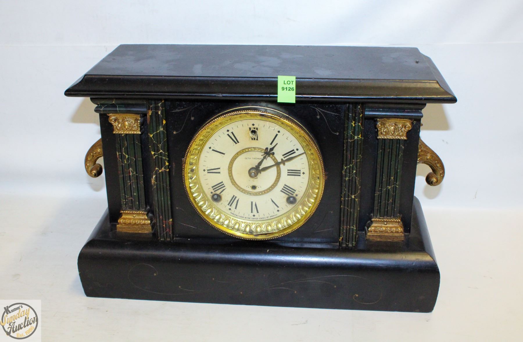 BLACK WM. GILBERT ADAMANTINE MANTEL CLOCK