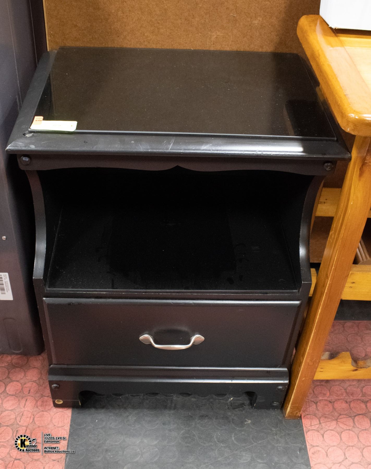 BLACK WOOD/GLASS SIDE TABLE 19" X 13" X 26"