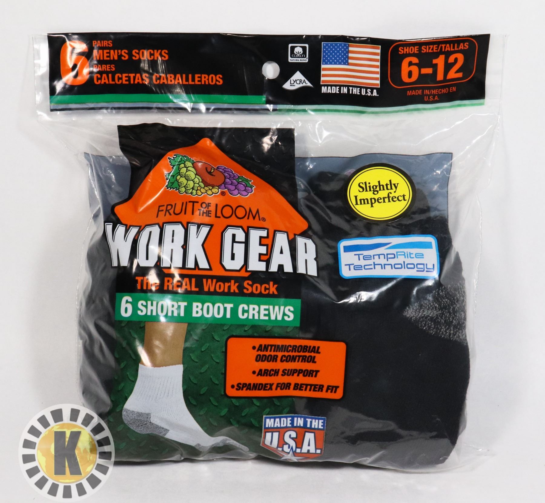 BLACK WORK BOOT SOCKS,6-12,PACK OF 6,FRUIT OF THE