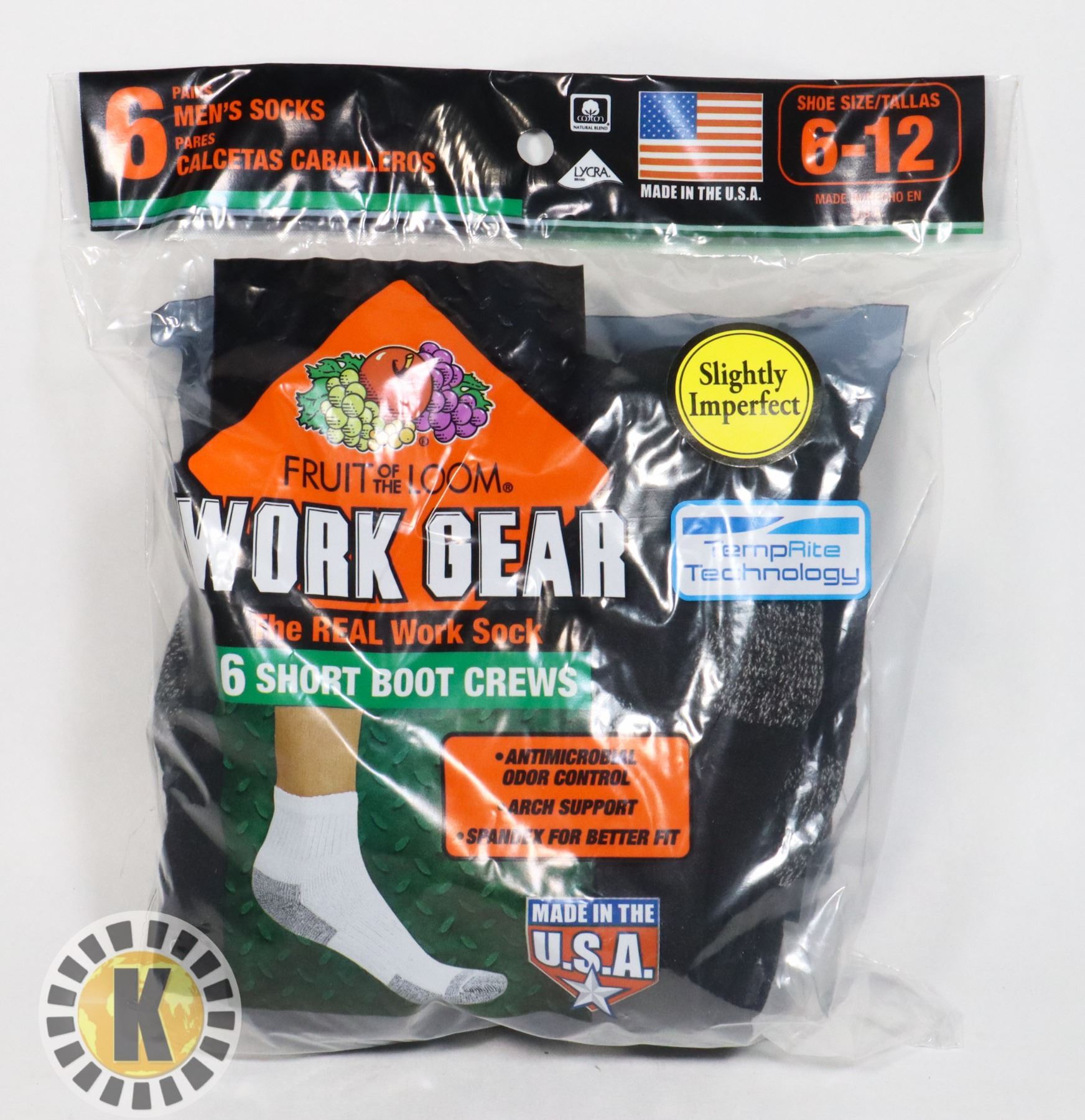 BLACK WORK BOOT SOCKS,6-12,PACK OF 6,FRUIT OF THE