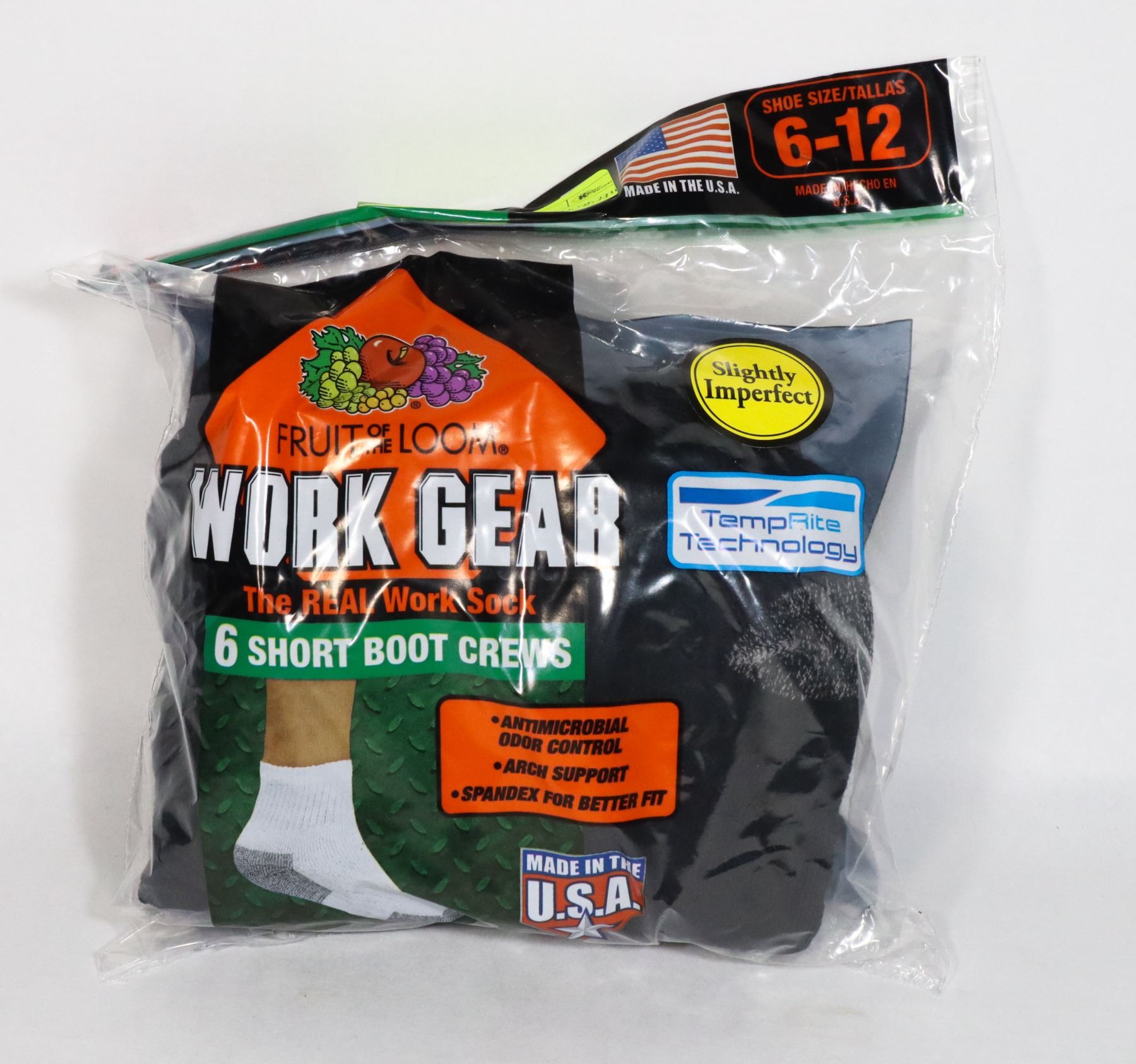 BLACK WORK BOOT SOCKS,6-12,PACK OF 6,FRUIT OF THE