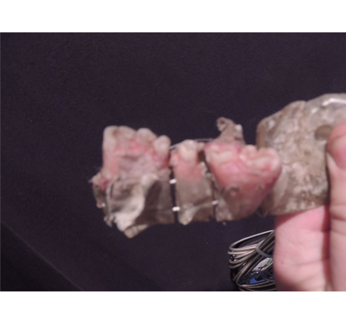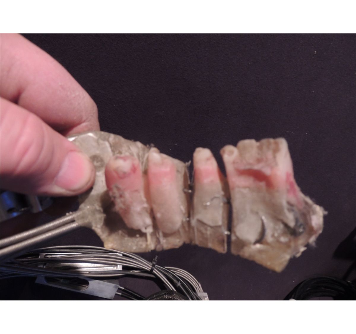 Part of the torso, part of the head, and the lower jaw with teeth are all here. The teeth can be screen matched though as the Nomak puppet is slightly different.