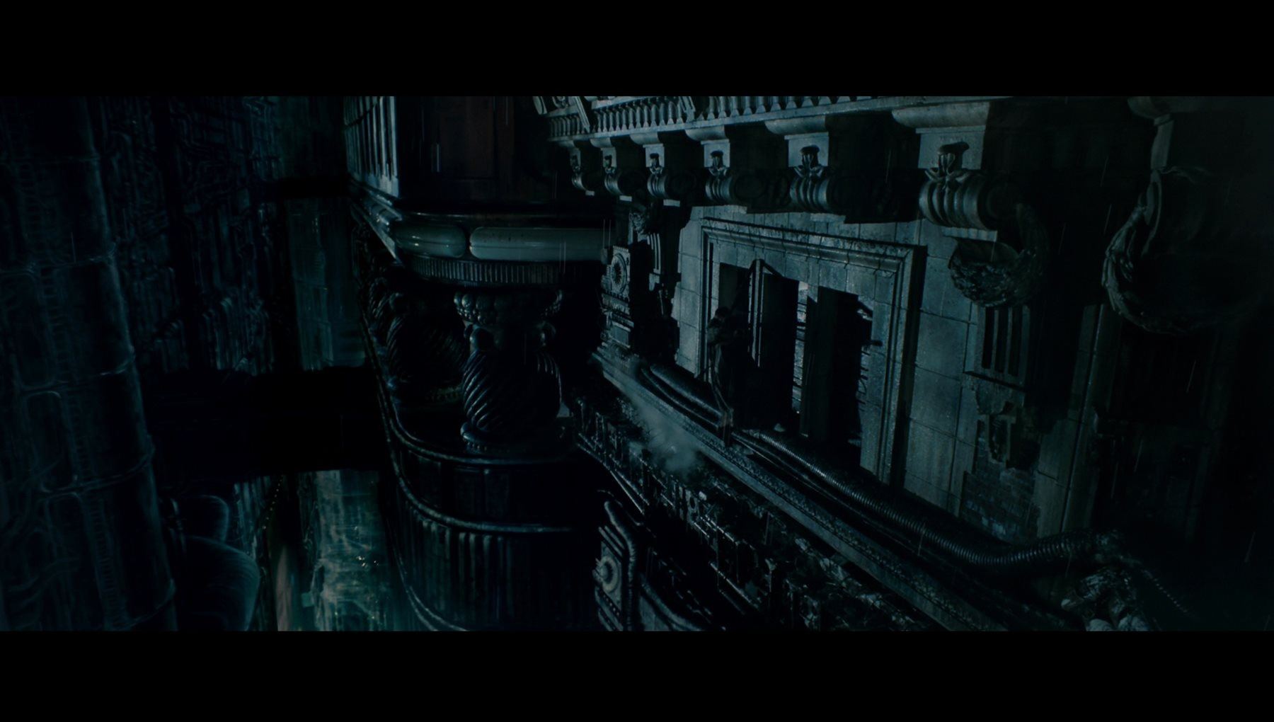 A matte painting by Matthew Yuricich from Ridley Scott’s sci-fi classic Blade Runner. Matte painting is one of cinema’s oldest visual-effects techniques, used to extend sets and create scenery for films by means of a painted image rather than a physical set. This matte painting was used for the shot in which Deckard (Harrison Ford) fled from the replicant Roy Batty (Rutger Hauer) and climbed out of a window onto a ledge of the Bradbury building.