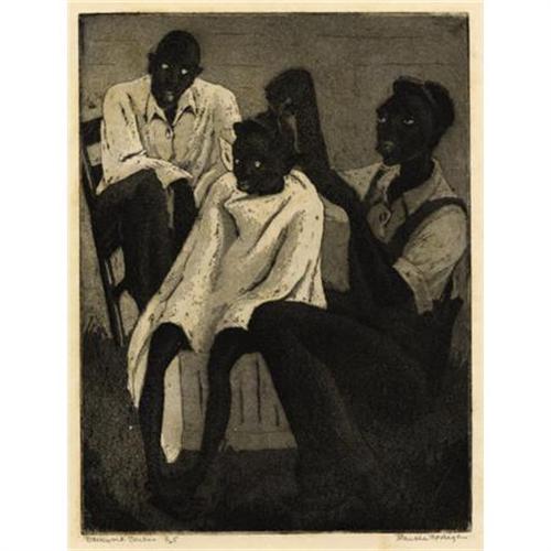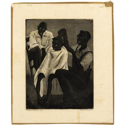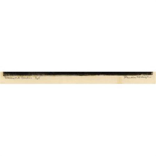 <B>BLANCHE MCVEIGH (1895-1970)</B></I><BR><I>Backyard Barber</B></I><BR>Etching and aquatint on paper<BR>9 x 7 inches (22.9 x 17.8 cm)<BR>Signed lower right<BR>Titled lower left<BR><BR> This rare and desirable print has a small edition size of twenty-five.<B>Condition Report:</B> Excellent condition with some light staining in the margins. Unframed.<BR><BR><b>Shipping:</b> Requires 3rd Party Shipping (<a target="_blank" href="http://www.heritageauctions.com/common/shipping.php">view shipping information</a>)