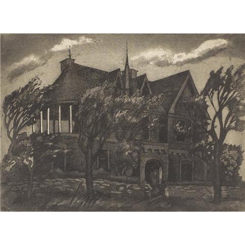 <B>BLANCHE MCVEIGH (1895-1970)<BR></B></I><I>Haunted House</B></I><BR>Aquatint etching<BR>11in. x 14in.<BR>Signed lower right<BR>Titled lower left<BR><BR>Provenance:<BR>Acquired from the artist<BR>Fort Worth Estate<BR><BR> <B>Condition Report:</B> Excellent condition. Period frame in excellent condition.<BR><BR><b>Shipping:</b> Requires 3rd Party Shipping (<a target="_blank" href="http://www.heritageauctions.com/common/shipping.php">view shipping information</a>)
