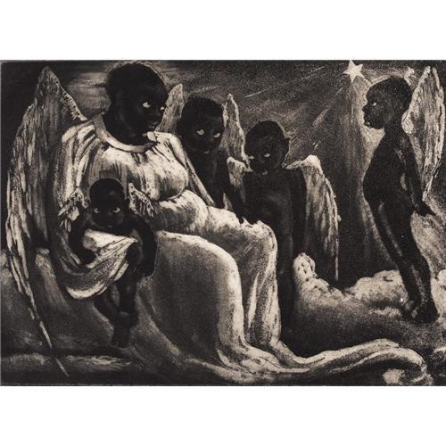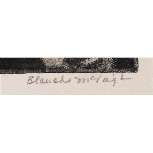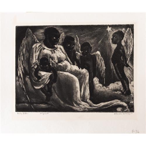 <B>BLANCHE MCVEIGH (1895-1970)</B></I><BR><I>Baby Sitter</B></I><BR>Aquatint<BR>7 1/2in. x 9 1/2in.<BR>Signed lower right<BR><BR>Blanche McVeigh's "angels" are among her most desirable prints. <I>Baby Sitters</B></I> is represented in the Fine Arts Museum of San Francisco.<BR><BR>Provenance:<BR>Collection of the Heard Museum, McKinney, Texas<BR><BR> <B>Condition Report:</B> Slight mat burn outside of image area. Unframed.<BR><BR><b>Shipping:</b> Requires 3rd Party Shipping (<a target="_blank" href="http://www.heritageauctions.com/common/shipping.php">view shipping information</a>)