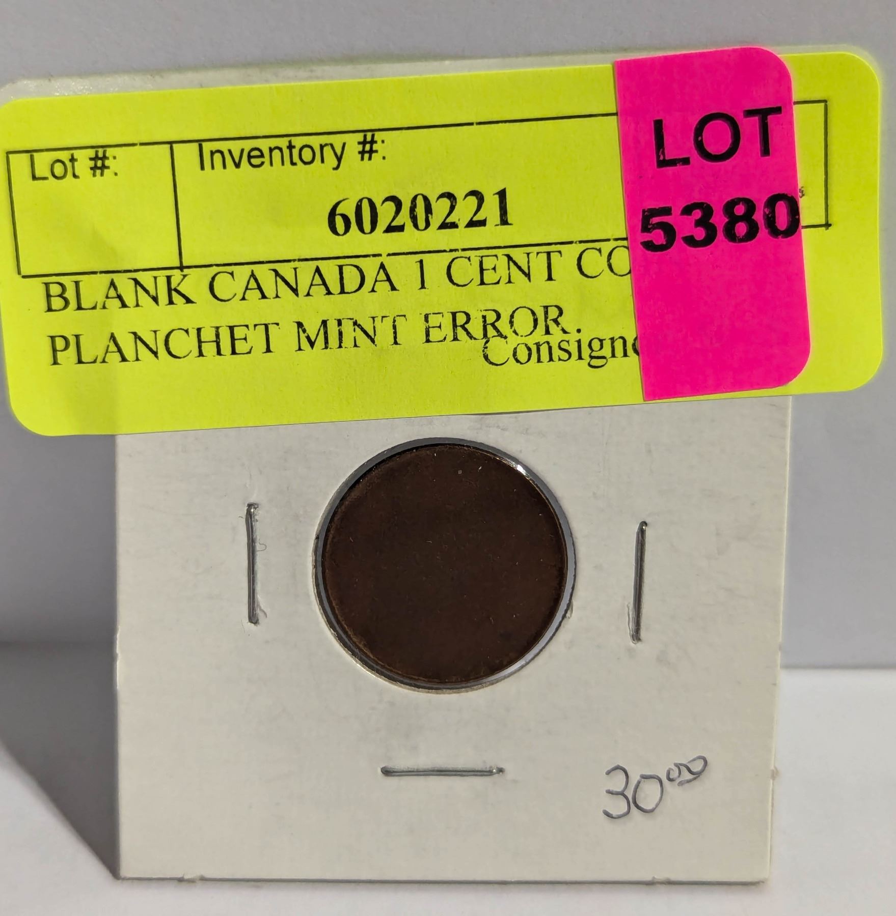 BLANK CANADA 1 CENT COIN PLANCHET MINT ERROR