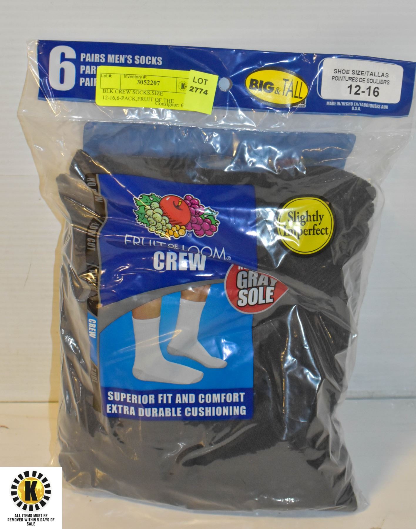 BLK CREW SOCKS,SIZE 12-16,6-PACK,FRUIT OF THE