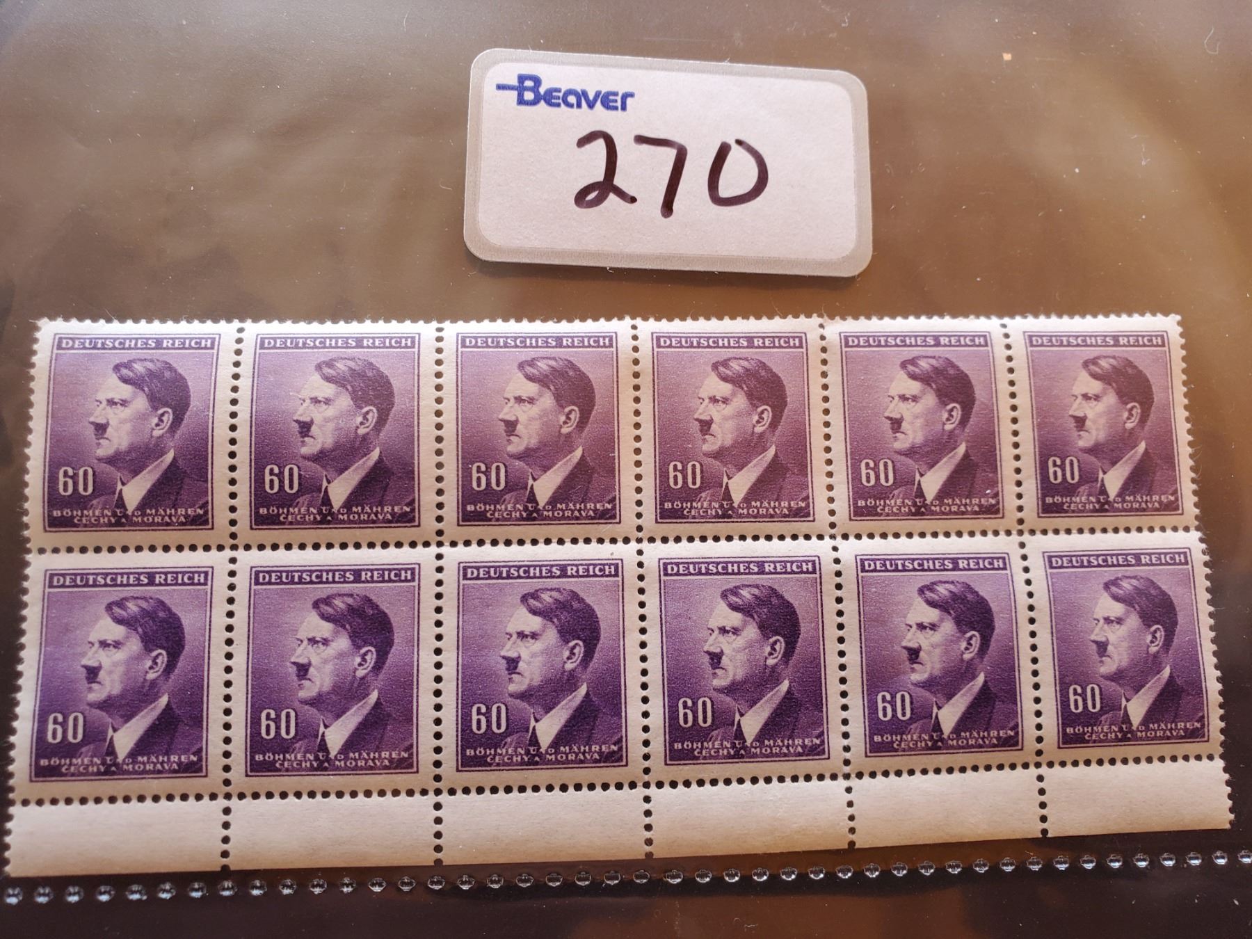 BLOCK OF 12 WWII NAZI STAMPS-GLUED/UNUSED- HITLER IMAGE (60)