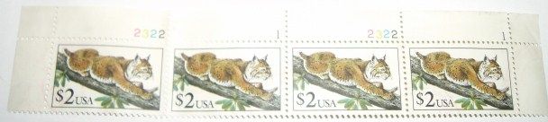 BLOCK OF 4 2 CENT U.S.A. RARE *LYNX CAT* Stamps *BLOCK OF 4 ALL FOR 1 MONEY*!! ***Coin, Currency & All Items Listed in this auction - Grades, Conditions and Values are not Safe Deposit Coins LLC Responsibilty. Grades, Condition and Values are determined by Consigner(s) & Buyers ONLY***