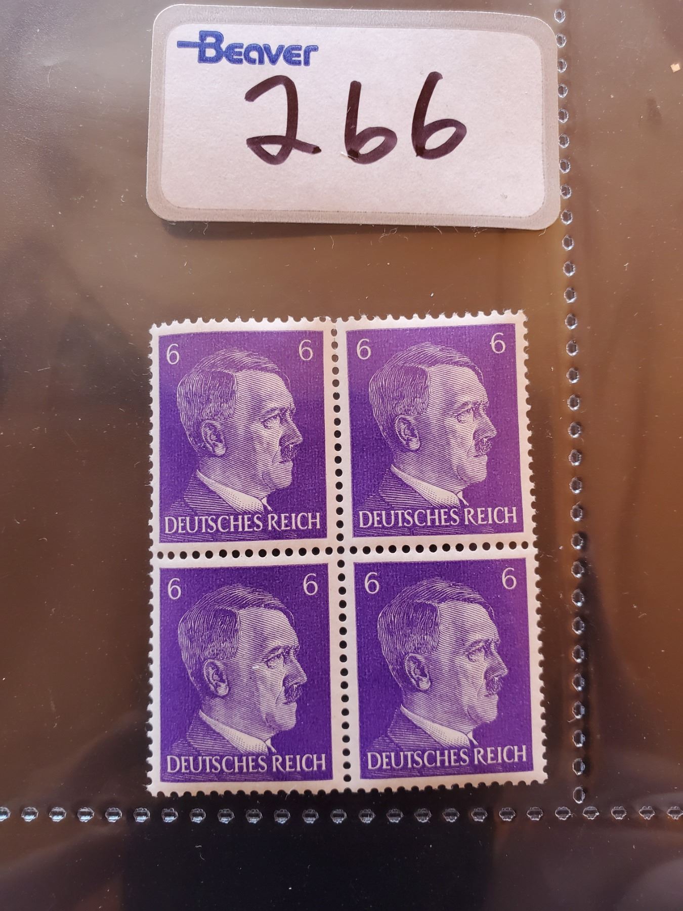 BLOCK OF 4 WWII NAZI STAMPS- GLUED/UNUSED-HITLER IMAGE (4)