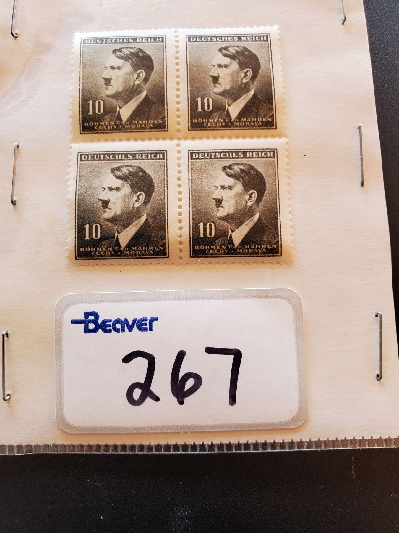 BLOCK OF 4 WWII NAZI STAMPS- GLUED/UNUSED-HITLER IMAGE (4)