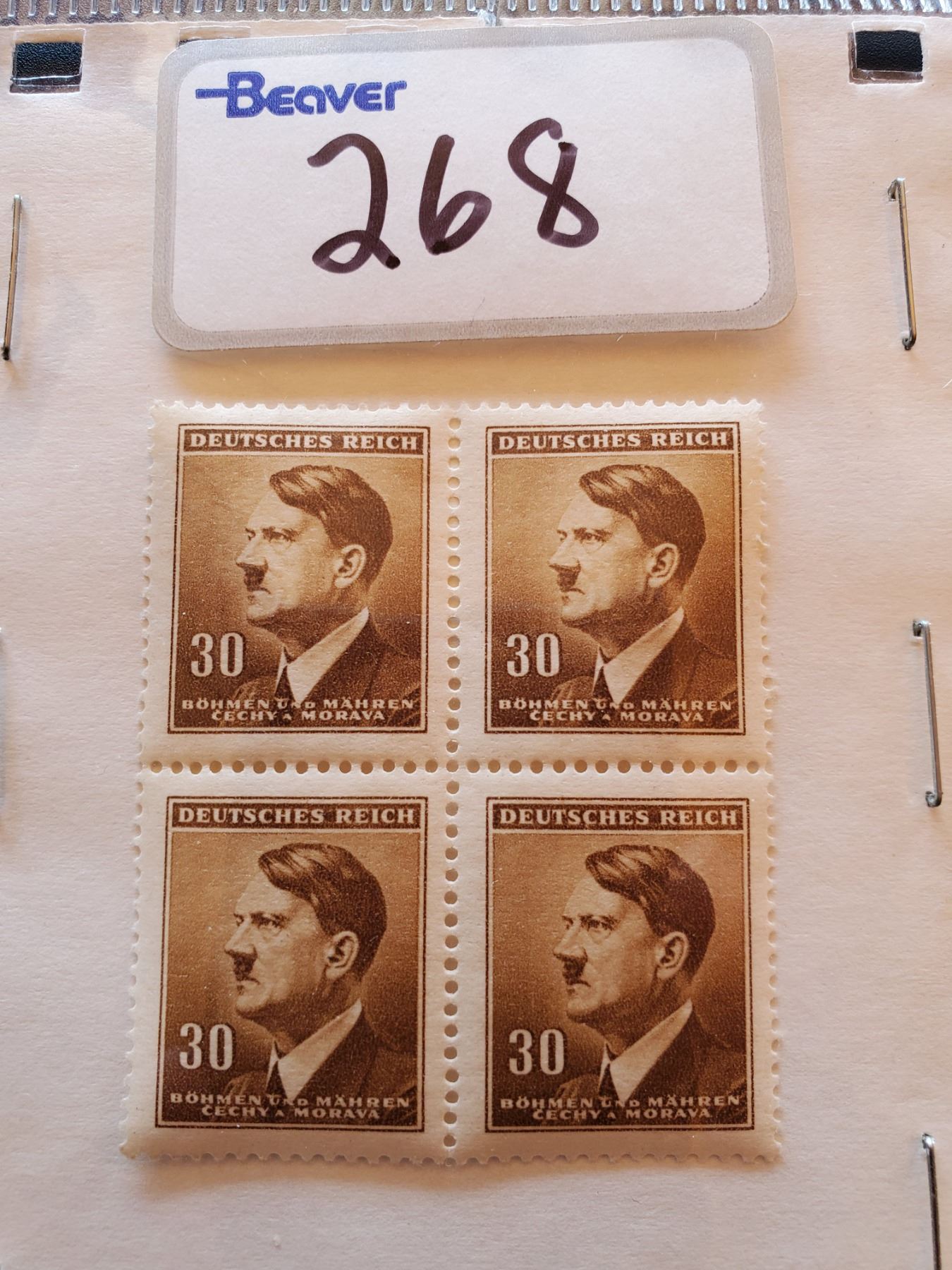 BLOCK OF 4 WWII NAZI STAMPS- GLUED/UNUSED-HITLER IMAGE (4)