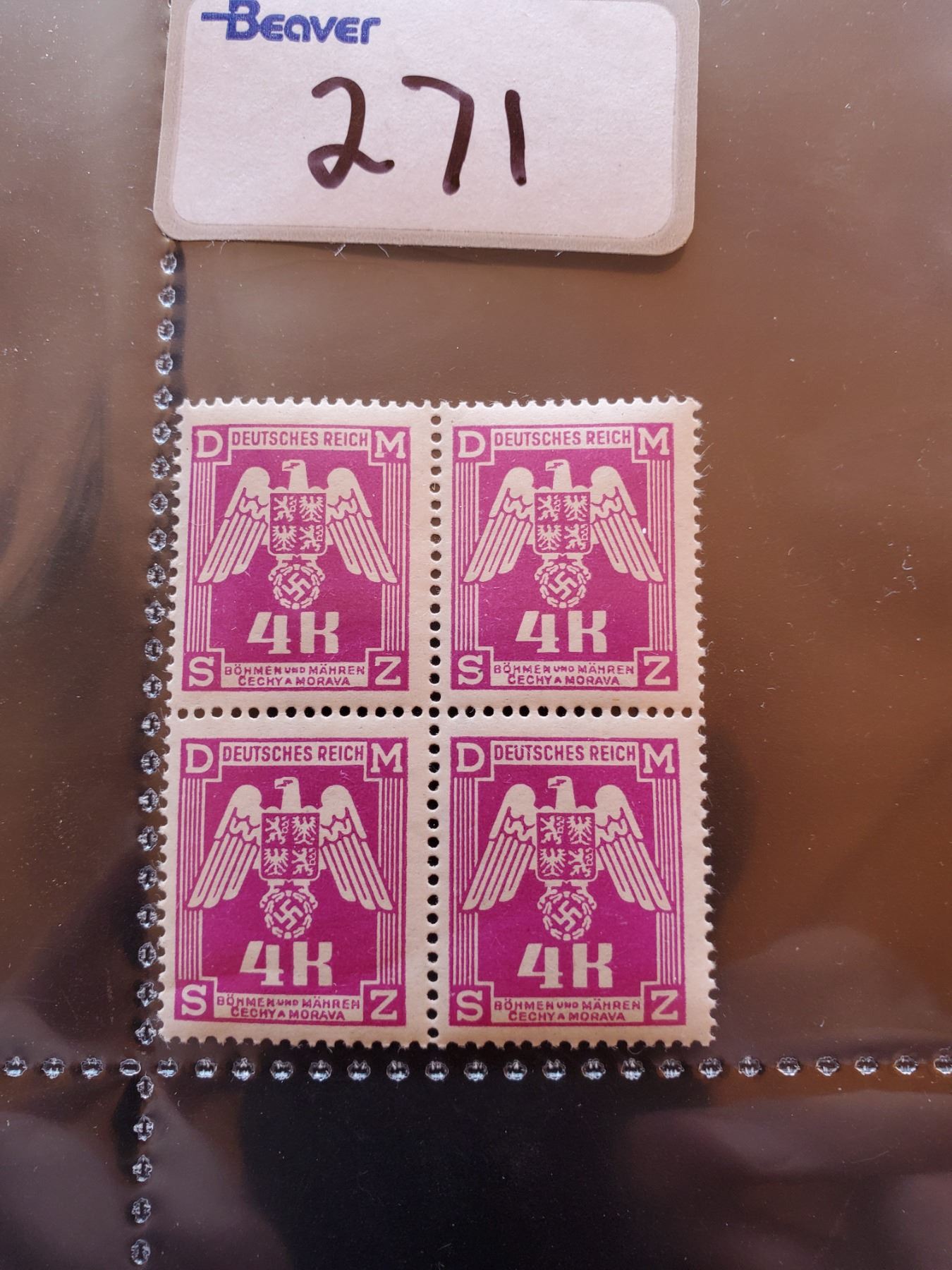 BLOCK OF 4 WWII NAZI STAMPS- GLUED/UNUSED-NAZI PARTY (4K)