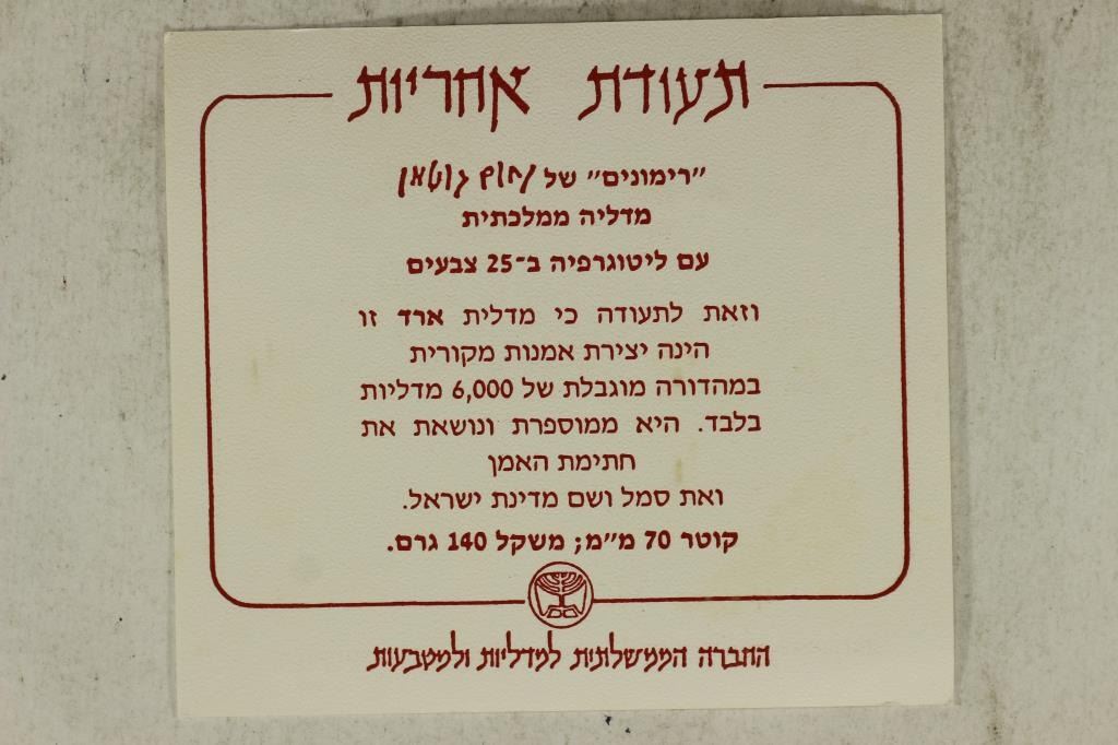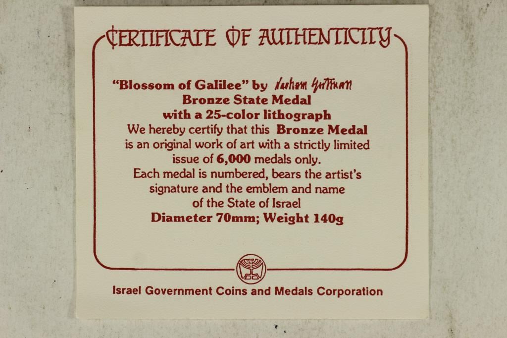 MEDAL WITH A 25 COLOR LITHOGRAPH. THE BRONZE MEDAL IS A ORIGINAL WORK OF ART WITH A STRICTLY LIMITED ISSUE OF 6000 MEDALS ONLY, EACH MEDAL IS NUMBERED, BEARS THE ARTIST SIGNATURE AND THE EMBLEM AND NAME OF THE