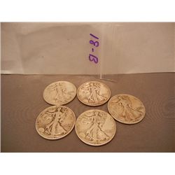 (5) Walking Liberty Half Dollars Mixed Dates
