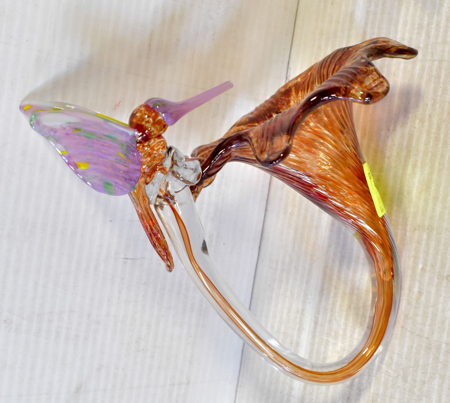 BLOWN GLASS HUMMINGBIRD WITH CAT COOKIE JAR