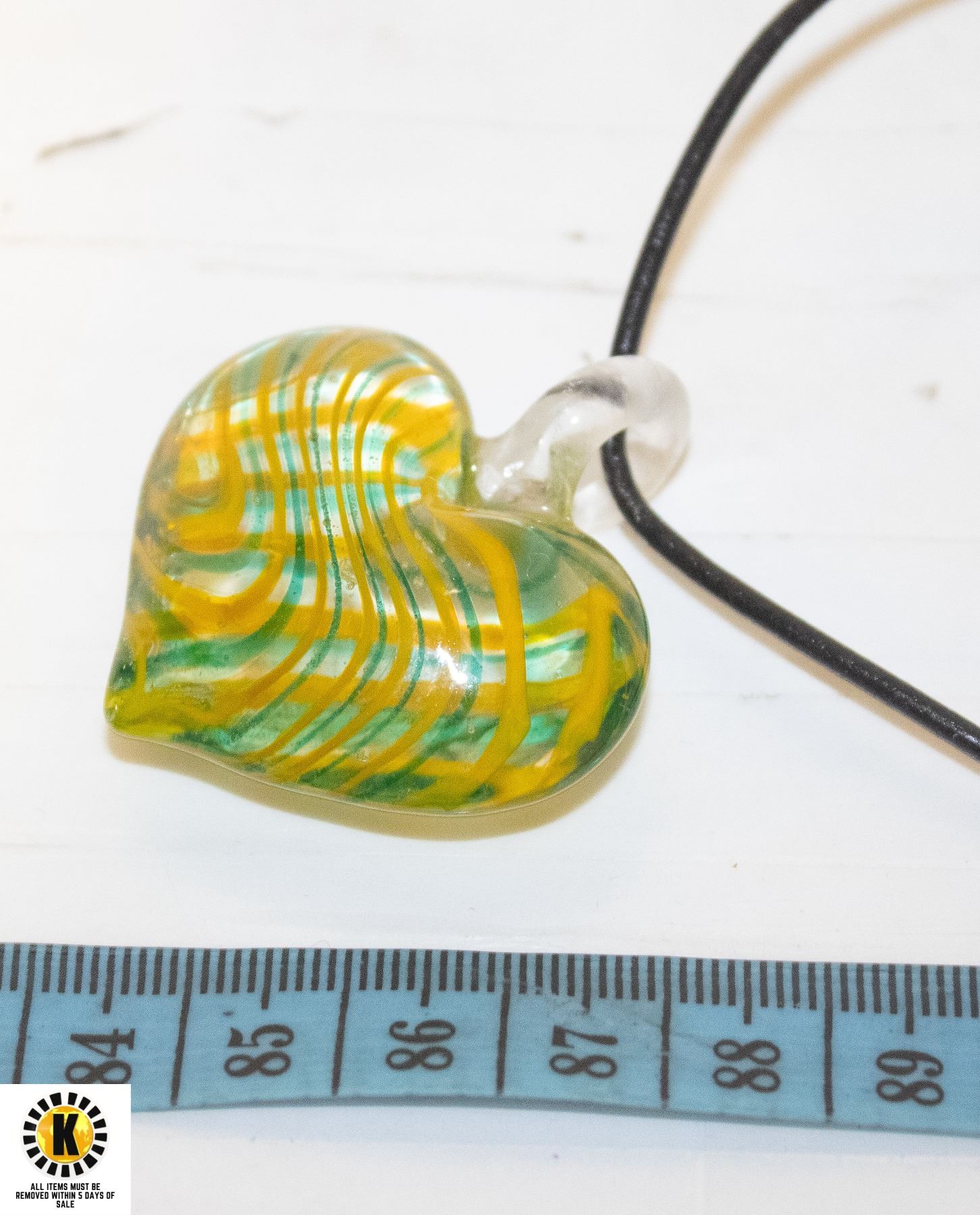 BLOWN GLASS YELLOW HEART NECKLACE 18"