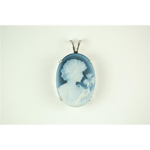 This beautiful AGATE CAMEO measures 25 x 18mm and is set in a Sterling Silver Pendant. This Hand Carved CAMEO features the profile of a woman looking to her left at a flower. It IS exquisite.