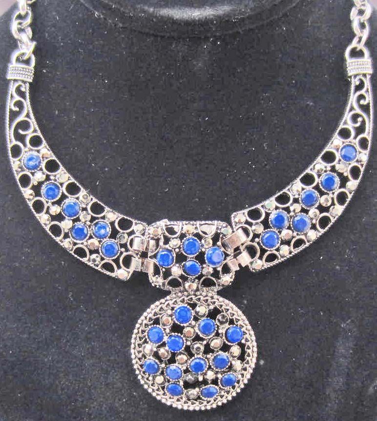BLUE AND SILVER ESTATE JEWELRY NECKLACE